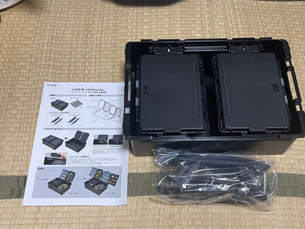 基本は同じくメイホウから出ているBM-5000とVS-7090Nにシステム収納が出来る商品で、他には40サイズの各社バッカンにも装着できるアダプターが付属しています。