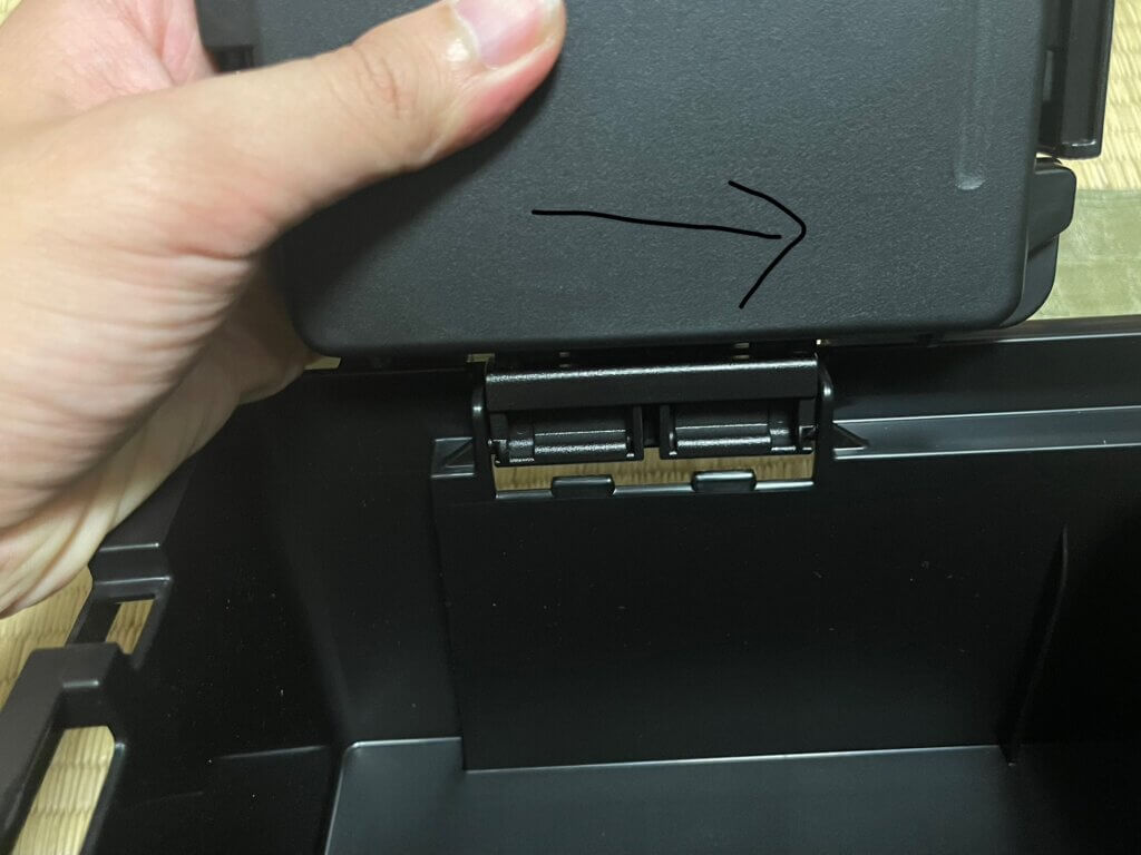 立てた状態で写真のやじるしの方にスライドさせると。